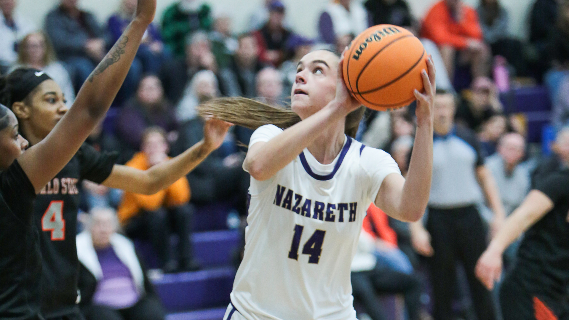 In the second quarter, Nazareth was able to take the lead by two with one minute and 30 seconds left, but the Griffins once again fought back and the Golden Flyers trailed by four heading into the second half.